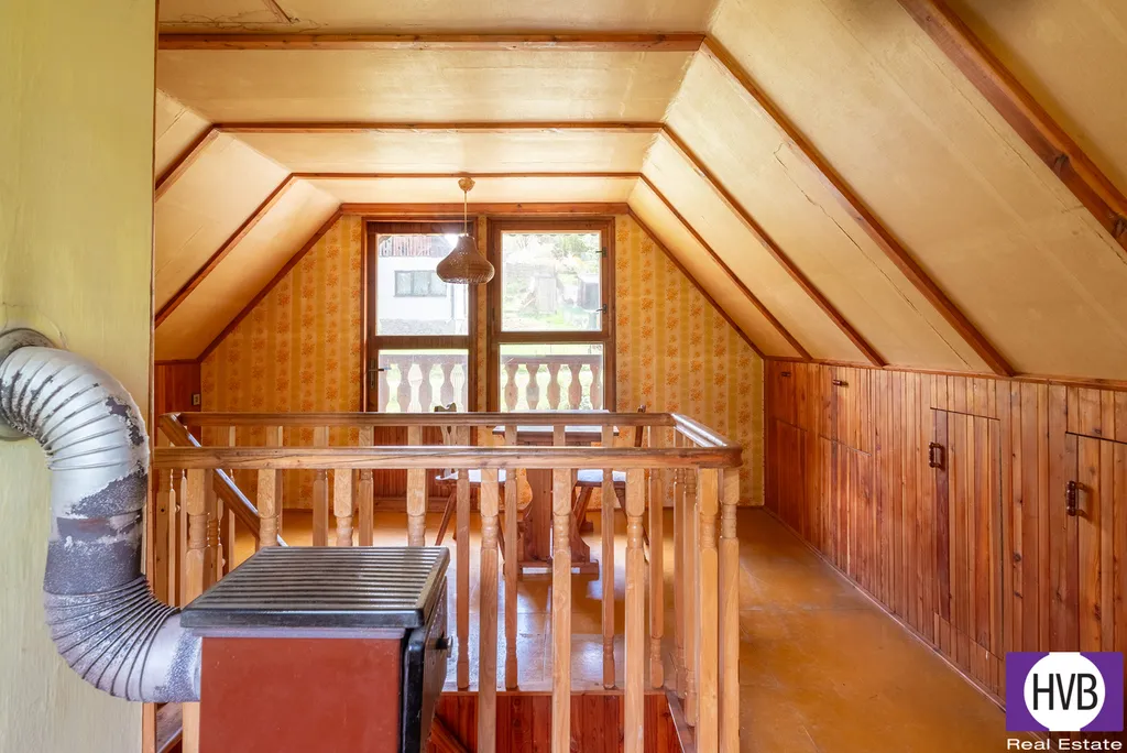 Nabízíme k prodeji zděnou chatu na pozemku 457m2 v obci Záhoří okr. Plzeň-jih. Cihlová chata o zastavěné ploše 44 m² na pozemku o rozloze 457 m² s obytným podkrovým, která ma pod krytým zádveřím chladný sklep. Vytápění je zajišťováno krbem a kamny jak v obytných pokojích, tak v kuchyni. Chata je napojena na elektřinu a vlastní septik.