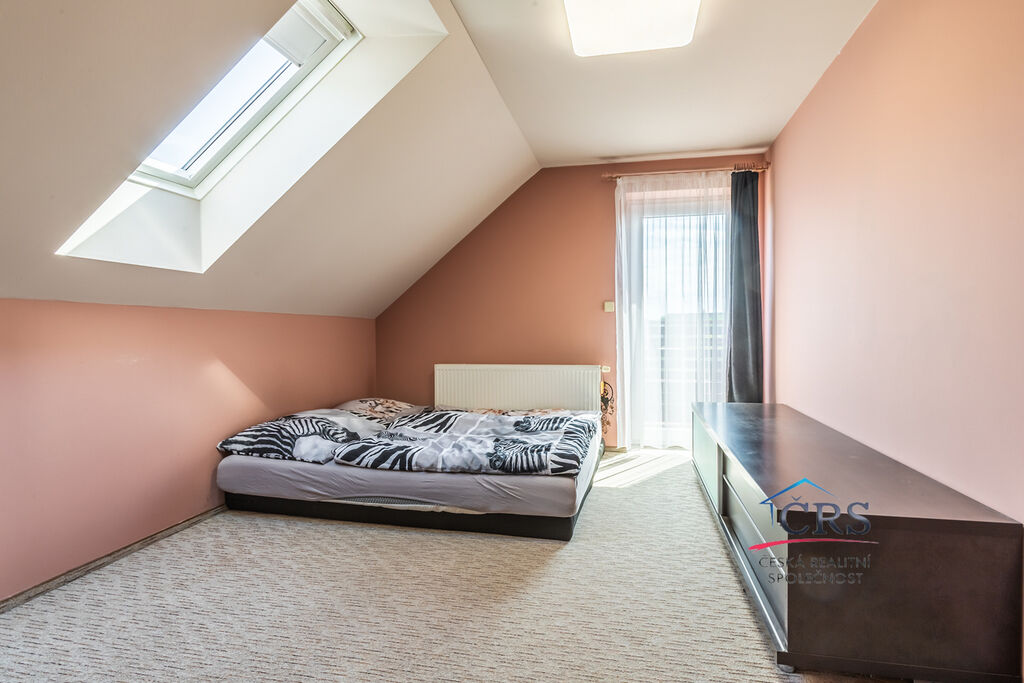 Dvougenerační rodinný dům o celkové dispozici 8+1 ležící na pozemku o velikosti 840 m2, zastřešenou terasou 30 m2 bazénem a prostornou garáží. V přízemí se nachází prostorný obývací pokoj s východem na terasu, pracovna, koupelna, samostatná toaleta, garáž, chodba, zádveří, kuchyňská linka s vestavěnými spotřebiči ( sklokeramická deska, el. trouba, myčka, mikrovlnná trouba, digestoř, americká lednice ). V prvním patře jsou 3 ložnice, obývací pokoj, ložnice ( zde je příprava na kuchyňskou linku ), chodba, pracovna, koupelna s toaletou. Dům napojen na veškeré IS ( vodovod, plyn, elektřina, kanalizace, vlastní studna ), vytápění v domě řešeno plynový kotlem – v přízemí podlahové, v patře radiátory. Dům byl zkolaudován v roce 2008.