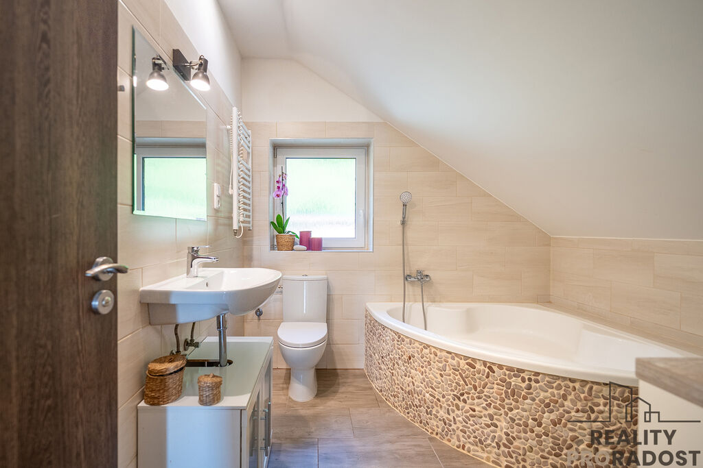 V domě najdete vše, co potřebujete k pohodlnému životu. Dvě koupelny s toaletou zajistí, že se rána neponesou ve znamení čekání. Voda z vlastní vrtané studny (40 m) se změkčovačem je čistá a vždy k dispozici.