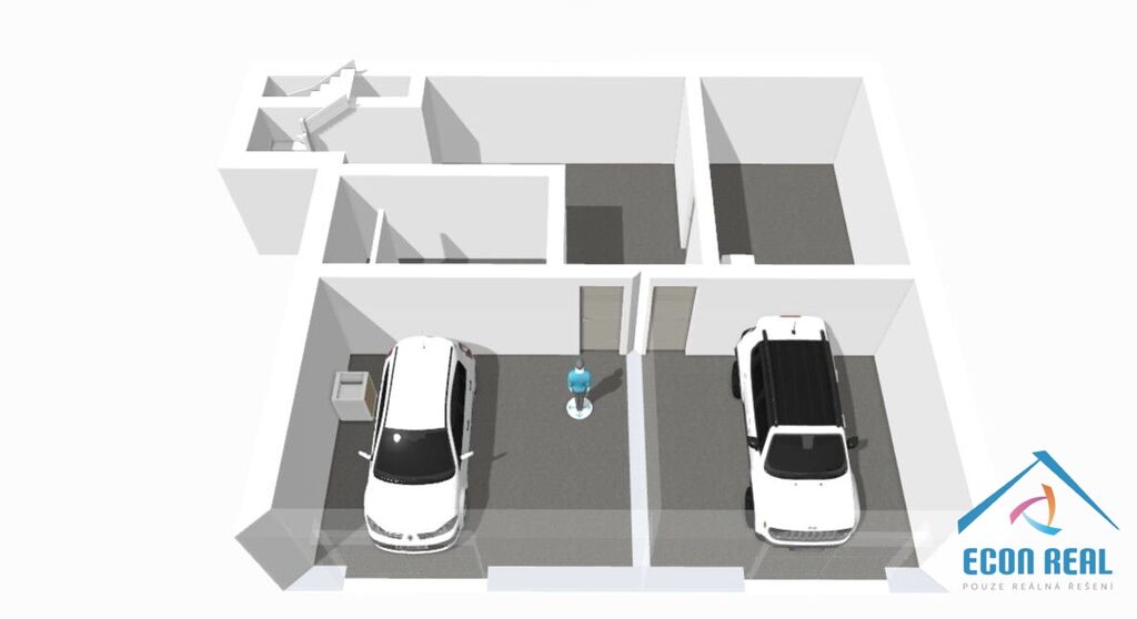 Popis domu: 1PP - technické zázemí, dvě samostatné garáže s novými vraty, technická místnost, prádelna, kotelna.