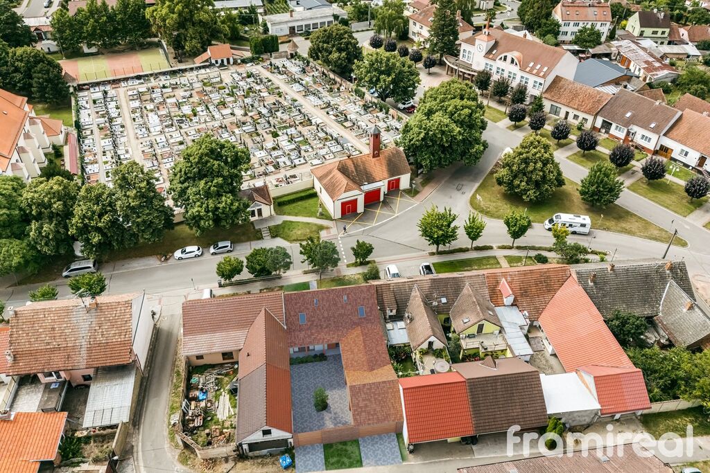 Dům se nachází v klidné, ale centrální části obce, jen pár kroků od vinohradů, sklepních uliček i centra. Rekonstrukce nebo nová výstavba zde nabízí jedinečnou možnost spojení klidného bydlení a atraktivního podnikání.