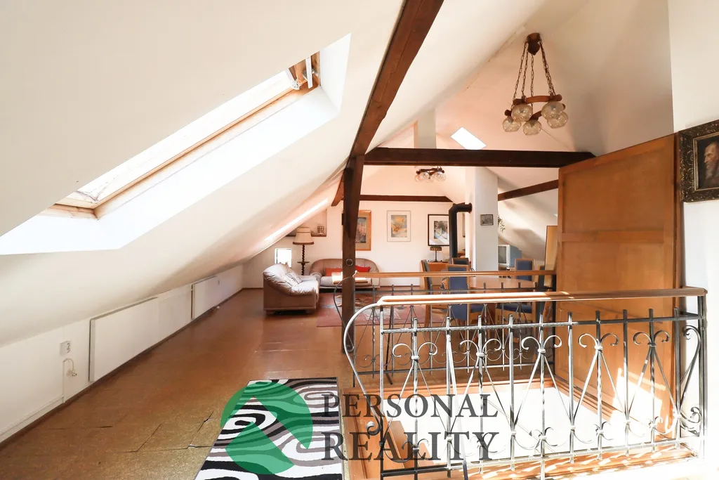 Třetí nadzemní podlaží tvoří světlý ateliér s kamny – ideální jako pracovna, pokoj pro hosty nebo inspirativní tvůrčí prostor.