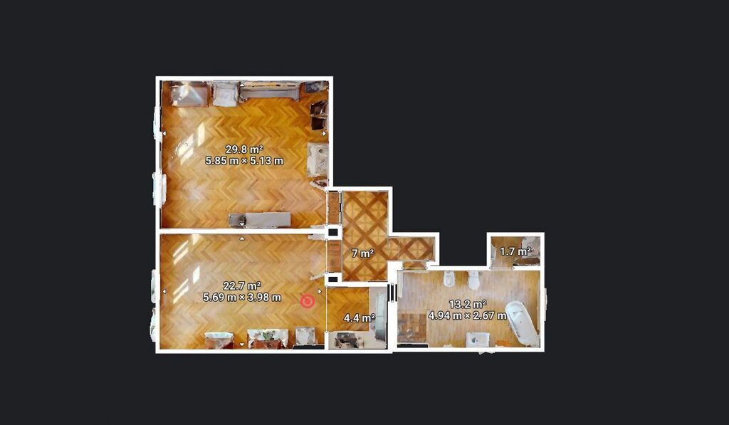 Byt je po rozsáhlé rekonstrukci, ve vynikajícím stavu, vybavený eurookny. Vysoké stropy. Topení zajišťuje plynový kotel. Skládá se z předsíně, pokoje, obývacího pokoje s kuchyňským koutem, koupelny a WC. Obývací pokoj a ložnice jsou orientovány na jižní stranu.