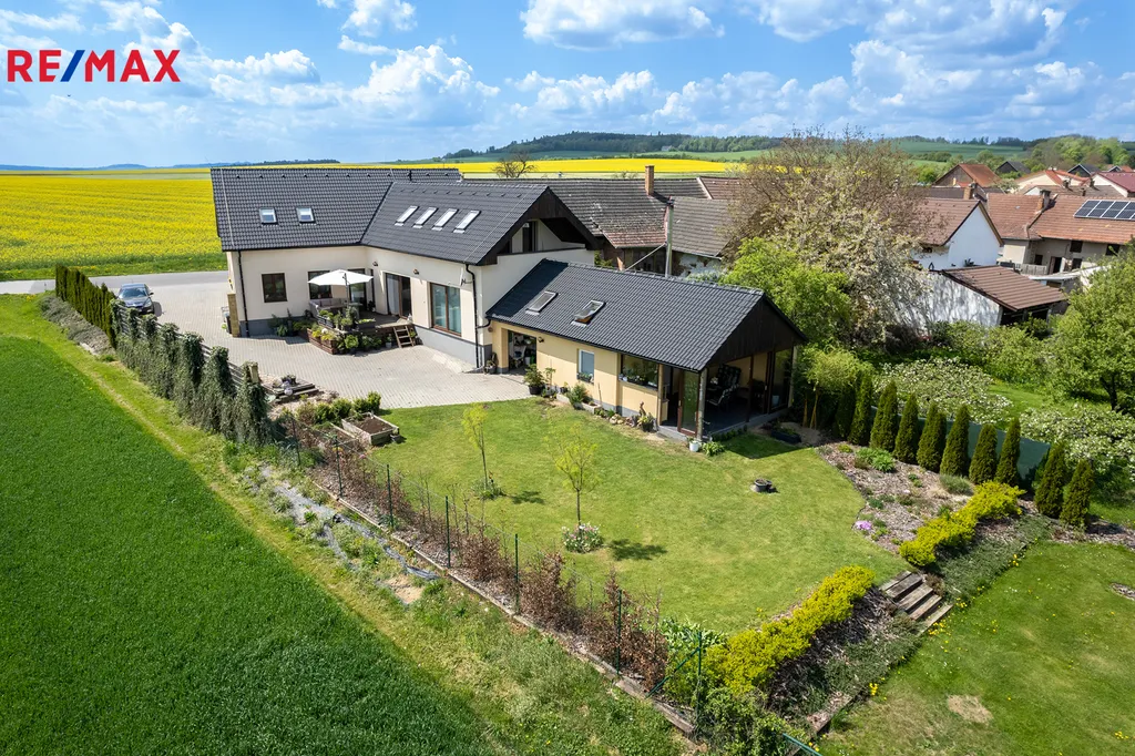 Dokola ho obklopuje klidné venkovské prostředí Oponešic, přitom jen pár minut od centra Jemnice a Moravských Budějovic. S 340 m² podlahové plochy a střešním terénem 1 239 m² máte dostatek prostoru pro život i relaxaci.
