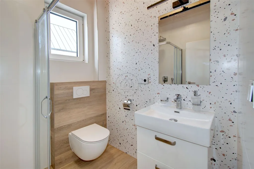 Dům o kapacitě až 10 osob nabízí komfortní zázemí pro rekreaci celé rodiny nebo budoucích hostů. Architektonicky zapadá do šumavského prostředí a byl postaven s důrazem na kvalitu provedení a použitých materiálů. Dispozice zahrnuje prostornou obývací část s kuchyní a vstupem na terasu, dále jsou k užívání čtyři pokoje, lodžie, technická místnost, koupelna a samostatné WC. Součástí domu je i nadstandardní vybavení – stylová krbová kamna, prosklené portály, velkoformátové dlažby a podlahové vytápění. Dům je napojen na obecní vodovod, kanalizaci a je vytápěn tepelným čerpadlem. Na prodej jsou i další domy a stavební pozemky. Uvedená cena je včetně 21% DPH.