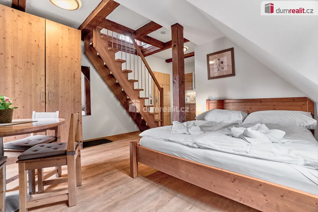 Exkluzivně nabízíme k prodeji luxusní mezonetový apartmán v rezidenci Horská zahrada v Krušných horách, pouhých 100 metrů od lanovky skiareálu Plešivec s vlastním parkovacím místem v ceně. Tento moderně zařízený byt o dispozici 2+kk se nachází v 1. patře hlavní budovy a je po kompletní rekonstrukci. Nabízí pro nové vlastníky plochu 41,2 m² a veškeré komfortní vybavení včetně centrálního plynového vytápění a internetového připojení. Nehledejte dál, tady najdete svůj nový domov v horském ráji! Zde si nepořizujete pouze apartmán, ale soukromý kousek hor - pořizujete si horskou zahradu na slunečním jižním svahu pro váš klid a relaxaci. Součástí koupě apartmánu je i podíl na pozemku (zdarma) v uzavřeném areálu o velikosti 3800 m², s krytým posezením a grilem. Dále zde najdete lyžárnu, kolárnu, dětské hřiště, parkoviště a mnohé další. Možností je i koupě dalších volných apartmánů v hlavní budově různých dispozic, či samostatnou chatu. Pro více informací nás neváhejte kontaktovat nebo navštivte web nemovitosti. Ev. číslo: 651271.