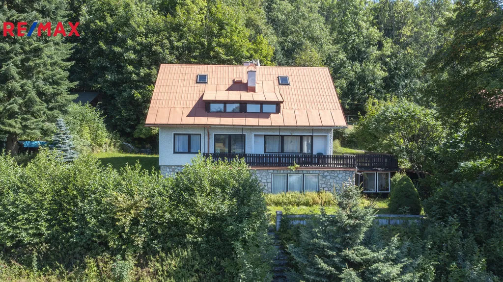 Dům je umístěn na pozemku o celkové výměře 1 302 m². Těsná blízkost lesa Vám zajistí naprosté soukromí. Z pozemku jsou navíc nádherné výhledy.