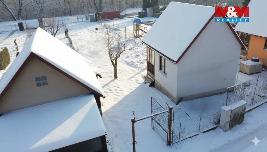 Chata je využívaná pouze během sezóny, takže nemá zařízené vytápění, ale to je možné dodělat. Uvnitř je malý sklep a vlez na půdu. Vchod na zahradu je možný ze dvou stran, včetně parkování. Chatařská oblast je kousek za městem Postoloprty.
