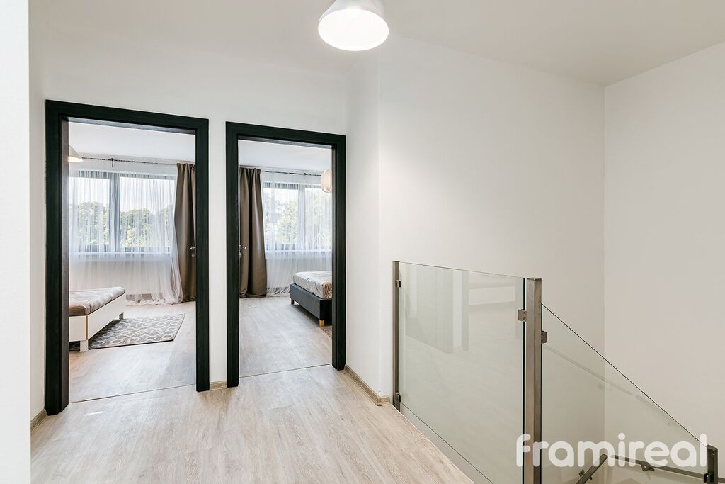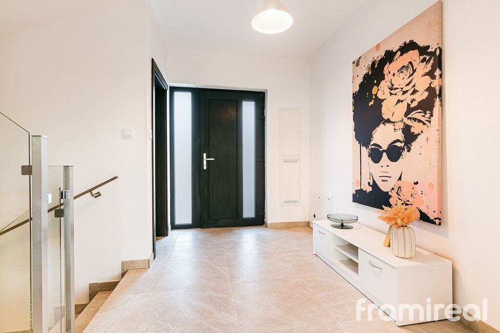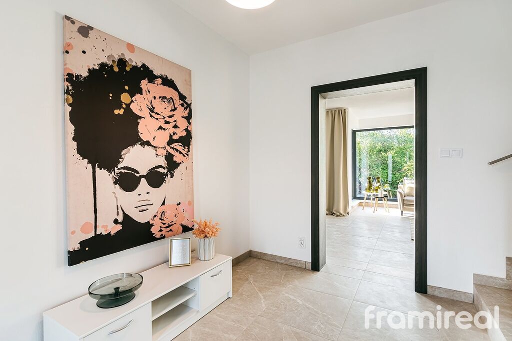 Dům je rozdělen do tří logicky uspořádaných podlaží. V přízemí se nachází prostorné zádveří s dostatkem místa pro odložení věcí, dále následuje velkorysý obývací pokoj s přípravou pro kuchyň a jídelnu. Díky velkoformátovým oknům je interiér prosvětlený a lodžie nabízí ideální prostor pro ranní kávu nebo večerní relaxaci. Přízemí dále doplňuje samostatná toaleta a příprava na předokenní žaluzie, které oceníte zejména v letních měsících.