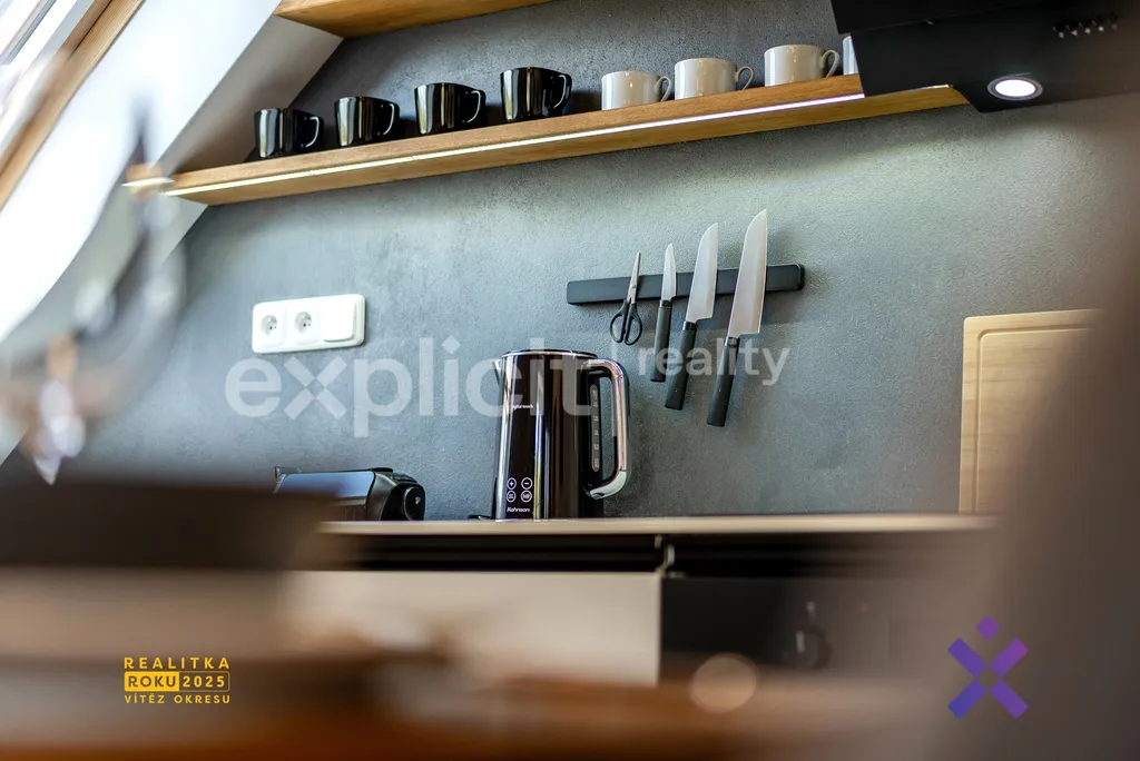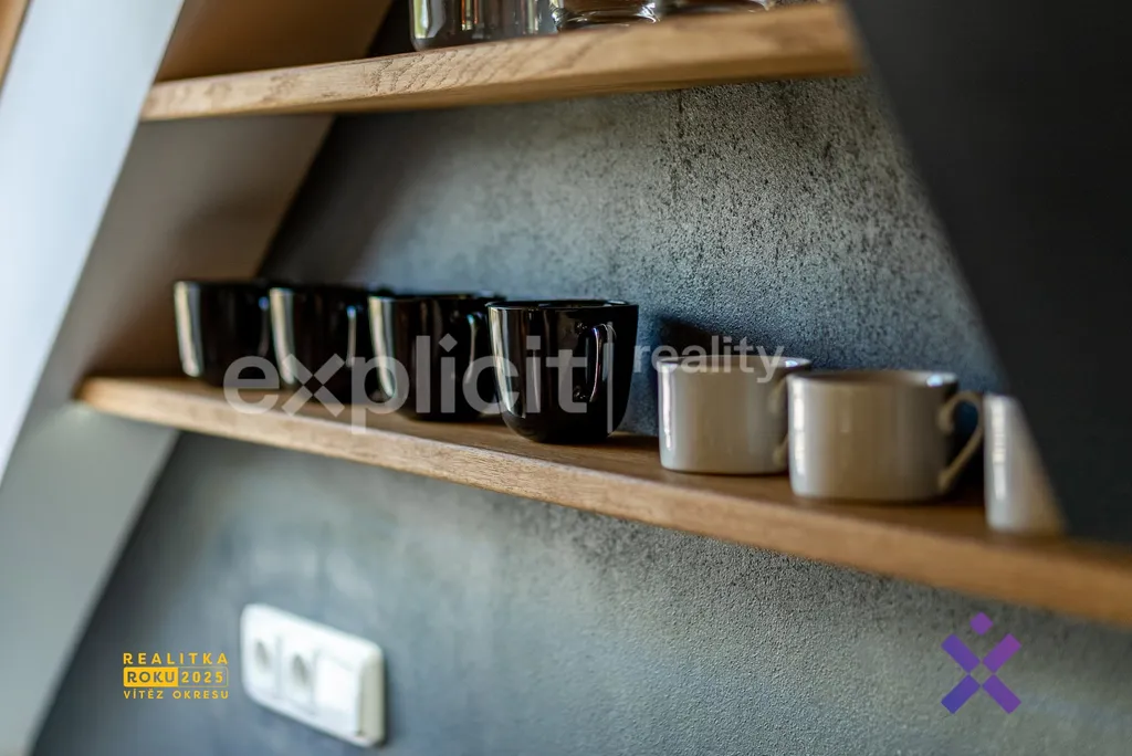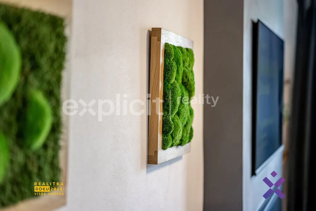 Interiér byl navržen s důrazem na moderní design a kvalitní provedení. Při rekonstrukci byly použity vysoce kvalitní materiály a celý apartmán je ve výborném, udržovaném stavu. Podlaha je vyrobena z masivního dubového dřeva. Dům, ve kterém se apartmán nachází, prošel kompletní rekonstrukcí před dvěma lety, je zateplený a společné prostory jsou ve výborném stavu díky aktivnímu fondu oprav.
