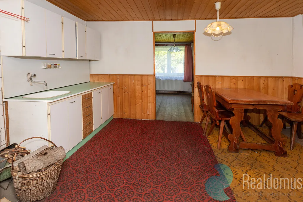 Plynový kotel s radiátory pro vytápění přízemí chalupy, možnost i topení v kamnech. Voda je zajištěna prostřednictvím kopané studny.