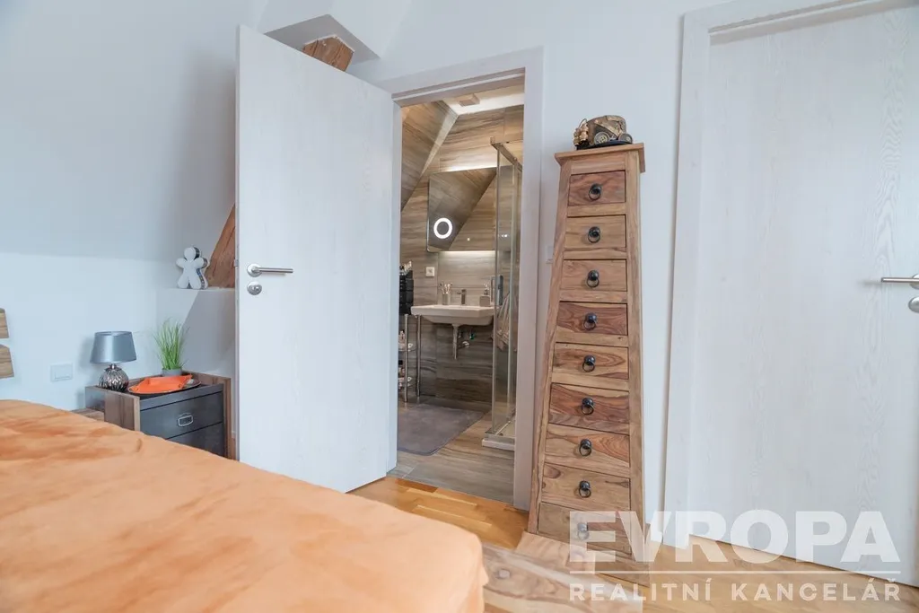 Exkluzivně Vám nabízíme k prodeji unikátní byt 4+kk o celkové podlahové ploše 164 m2. Jedná se o mezonetové bydlení (nová vestavba), kdy dispozičně se v 1. patře nachází vstupní hala, jedna ze tří koupelen s WC, dále pokoj pro hosty / ložnice, jídelní kout, nadstandardně velké zakázkové lůžko mezi trámy a velmi prostorný atypický obývací pokoj propojený s kuchyní, z něhož je přímý výhled na Ještěd. Ve 2. patře se nachází prostorná ložnice s vlastní koupelnou vč. WC a nadstandardně velkou šatnou, dále je zde druhá samostatná ložnice s koupelnou a WC, prací a úklidová komora. Byt se nachází v jedinečné lokalitě na Masarykově ulici ve 3. patře budovy bývalé Obchodní a živnostenské komory (poliklinika) naproti muzeu a lázním, na tzv. Zlatém kříži. Je zde zcela nový výtah s přednostní jízdou na čip do patra, kde se mezonet nachází. Přímo ve dvoře této historické budovy je vlastní nadstandardně široké parkovací stání, které je zabezpečeno proti zaparkování cizího vozidla elektronickým sloupkem na dálkové ovládání. Na patře je též samostatná komora s regály. Byt, který Vám nabízíme, se nachází za rohem na konci chodby bez jakýchkoli sousedů a není tak nikým rušen. Je vybaven exkluzivní kuchyňskou linkou z teakového dřeva se spotřebiči a po dohodě může zůstat kompletně zařízen. Byt je vybaven kamerovým a bezpečnostním systémem. Nízké provozní náklady jsou zde velkou výhodou a umožní tak příjemné okamžiky při užívání si vlastního prostoru a jedinečného místa na bydlení. Byt volný ihned.
