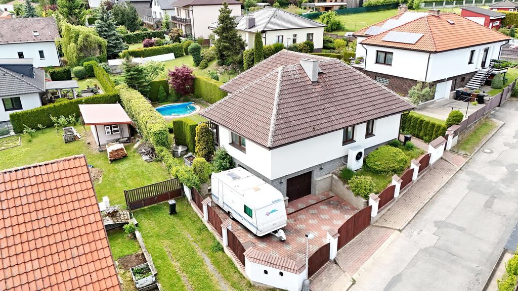 V přízemí se nachází samostatná jednotka 2+kk se zcela odděleným vstupem ze zahrady, která nabízí ideální zázemí pro hosty, vícegenerační bydlení nebo jako výhodnou investiční příležitost k pronájmu. Součástí domu je také dvougaráž, sklepní prostory a upravená zahrada se zapuštěným bazénem a vlastní studnou. Parkování je zajištěno nejen v garáži, ale také na zpevněné ploše s kapacitou pro další dva automobily.
