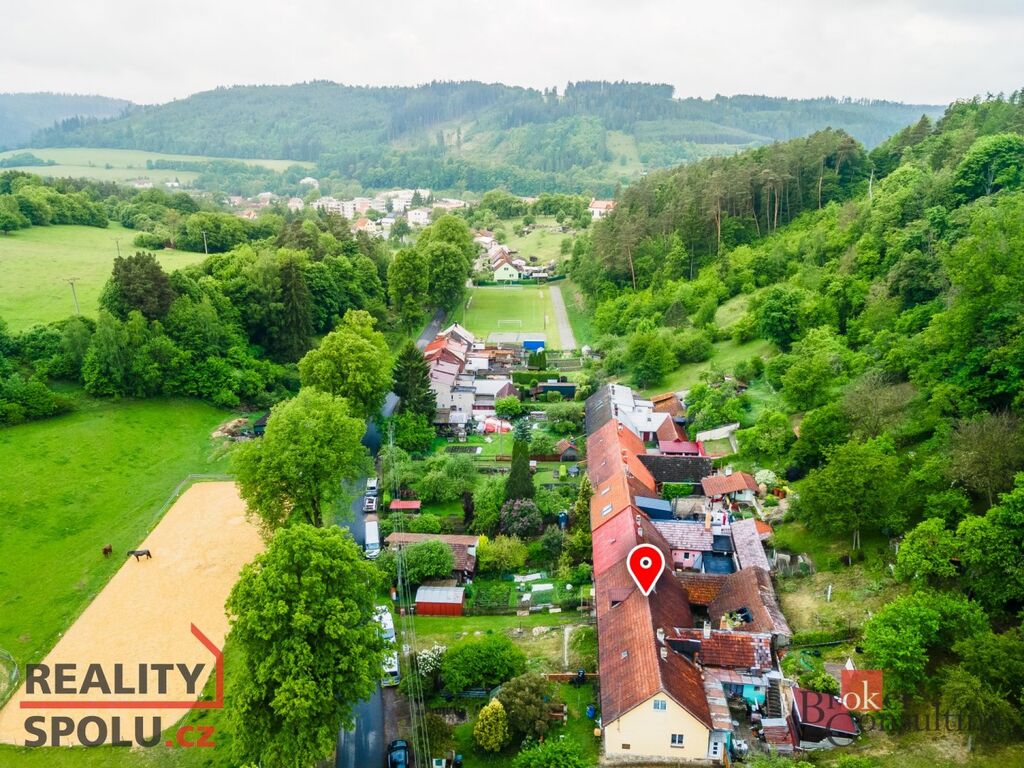 Součástí pozemku je také bývalé hospodářské stavení, které je nyní vhodné ke zbourání. Tento prostor lze přeměnit na útulné zázemí před vstupem do domu, např. k posezení nebo jako zahradní kout. Dále k domu náleží zahrádka o výměře cca 350 m² v horní části nad domem – ideální pro relaxaci s výhledem do přírody. Bezprostředně za domem začíná les, což umocňuje klid a soukromí tohoto místa.