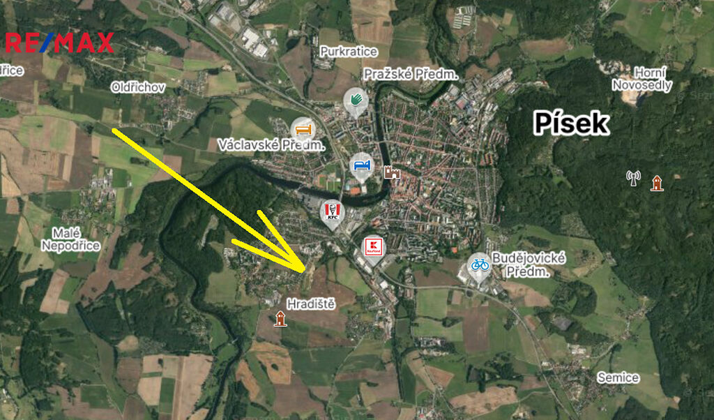 Dům je v klidné žádané lokalitě Hradiště, pěší chůzí 5 minut do nákupního centra a 15 min do centra města. Písek má veškerou občanskou vybavenost, školky, školy, veškerá sportovní vyžití jako fotbalové stadiony, plavecký bazén, v blízkosti okresní nemocnic, nákupní střediska. Pískem protéká řeka Otava, kolem které je jak pěší turistika, tak cyklo stesky. Z Písku do Prahy je dokončená dálnice D 4, dojezd 50 min, do Č. Budějovic dojezd 40 min.
