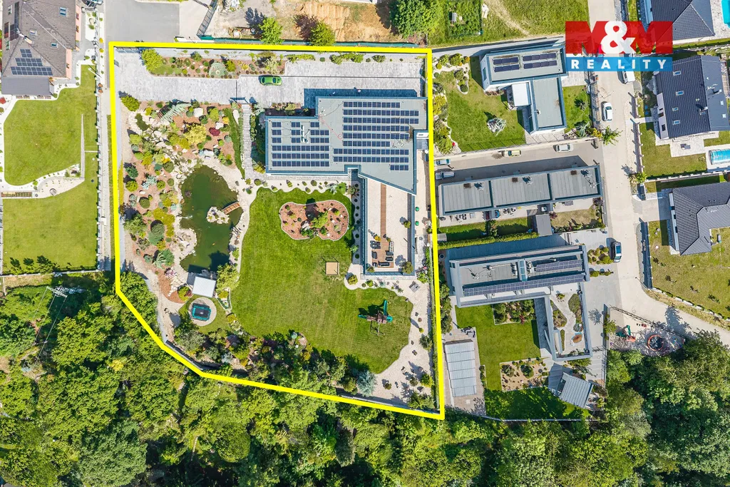 Prodej exkluzivní rodinné vily jen pár minut od Říčan a kousek od Prahy. Tato novostavba vás okouzlí nejen svou rozlehlostí a promyšleným designem, ale také technologickou vyspělostí a energetickou úsporností. Na pozemku o rozloze 5510 m² se nachází hlavní budova s užitnou plochou 895 m². Vila je koncipována jak pro velké setkávání s přáteli, tak pro klid v rodinném kruhu. Každý den si budete užívat velkolepou terasu navazující na hlavní ložnici, plynulé propojení interiéru s exteriérem, fantastické noční scenérie vaší zahrady a vždy se budete těšit domů, abyste mohli objevovat další detaily a zákoutí vašeho ráje. K vybavení patří fotovoltaická elektrárna s výkonem 40 kWp, tepelná čerpadla, podlahové vytápění, dobíjecí stanice pro elektromobily, desetimetrový přelivový bazén s wellness. Nechybí ani venkovní kuchyně s pecí na pizzu a domácí kino s klubem. Tento dům je ideálním místem pro ty, kteří hledají luxus, soukromí a klid.