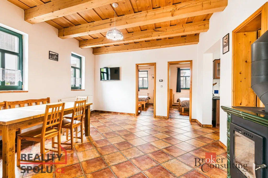 V objektu se nachází dvě chalupy ( větší a menší) - možno pronajmout jednu z nich, nebo celý objekt.