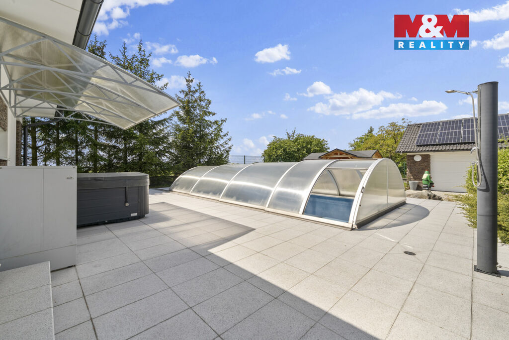 Nabízíme k prodeji exkluzivní rodinný dům v klidné části obce Dobruška. Tento zděný dům o dispozici 4+kk a užitné ploše 184 m² je ideální pro rodinné bydlení. Na pozemku o rozloze 231 m² najdete terasu, vyhřívaný bazén s mořskou vodou, vířivku a zahradní domek. Zahrada činí 2 213 m2. Celkově můžete využívat 2 444 m2 krásného rovinatého prostoru a to už stojí za to, nemyslíte? Vytápění domu i bazénu je zajištěno moderním tepelným čerpadlem. K dispozici je prostorná garáž pro dvě auta a menší garáž pro zahradní nářadí či kola. Celý objekt je oplocen a vybaven zabezpečovacím systémem. Výhodou je blízkost města Dobruška a hlavní trasy na Deštné v Orlických horách. Vzdálenost od automobilky v Kvasinách je cca 15 km. Nepropásněte tuto jedinečnou příležitost na bydlení v srdci přírody!