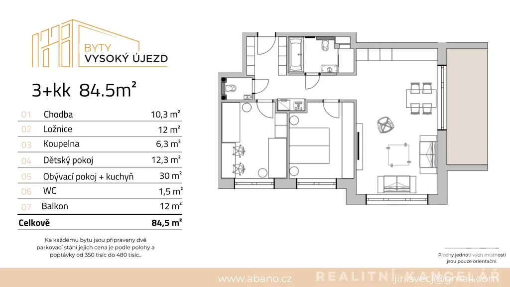 Moderní 3 + kk | 85 m² | Velká lodžie | 2x parkovací stání v ceně / Dokončeno zkolaudováno.