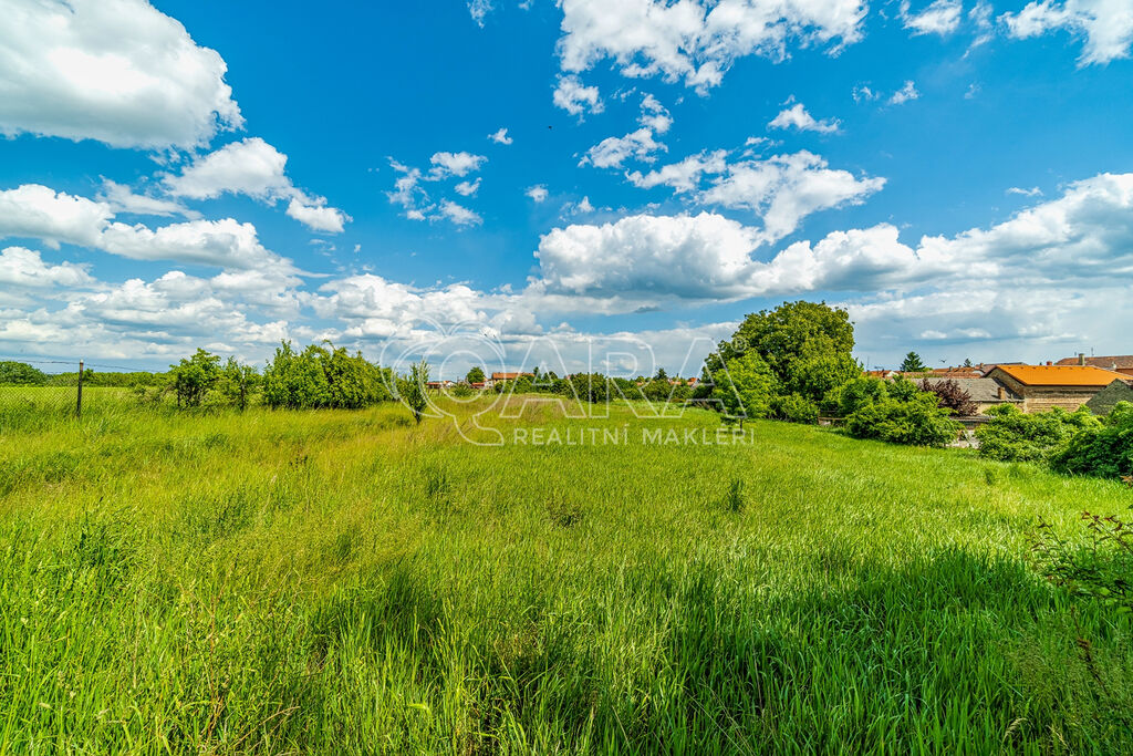 Pozemek má ideální obdélníkový tvar a navazuje na původní zástavbu na okraji obce s příjemným soukromím a výhledem do krajiny, které dominuje hora Říp.