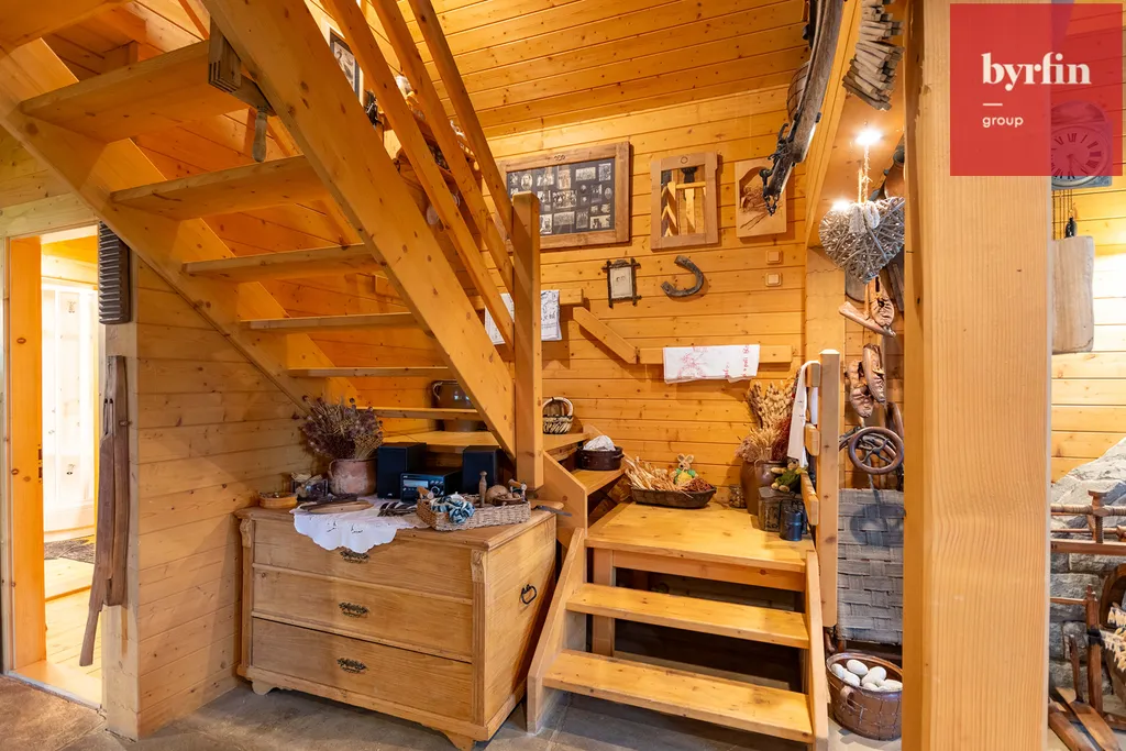 Tento dům, prezentovaný jako dřevěná roubenka, nese v sobě příběhy minulosti, což se odráží ve výzdobě různými historickými předměty jako jsou prvorepublikové hodiny, kameňáky, secesní žehličky, pečící formy i tradiční kroje. K domu náleží také altán, terasa s posezením, gril i ohniště – ideální pro setkávání s rodinou a přáteli. Celý objekt je oplocený, což zajišťuje soukromí.