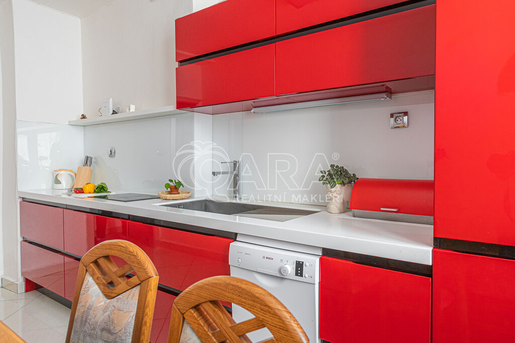 • V kuchyni je k dispozici myčka na nádobí, dvouplotýnková sklokeramická deska a vestavěná lednička s mrazákem.