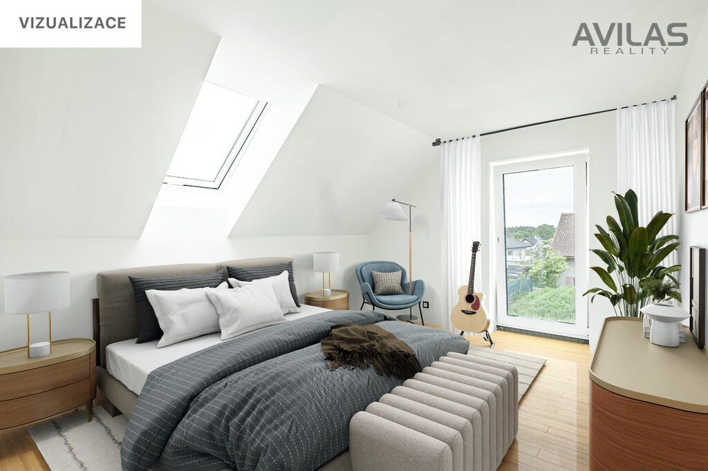 Podkroví: pokoj 13,30 m2, pokoj 11,36 m2, pokoj 11,14 m2, pokoj 10 m2, koupelna 9,22 m2, pracovna 8,10 m2, chodba 6,67 m2.