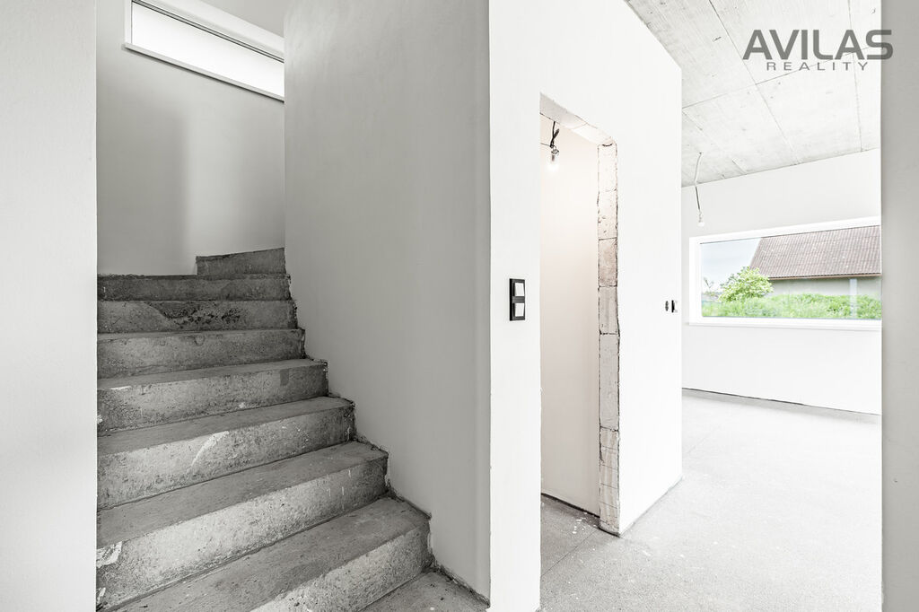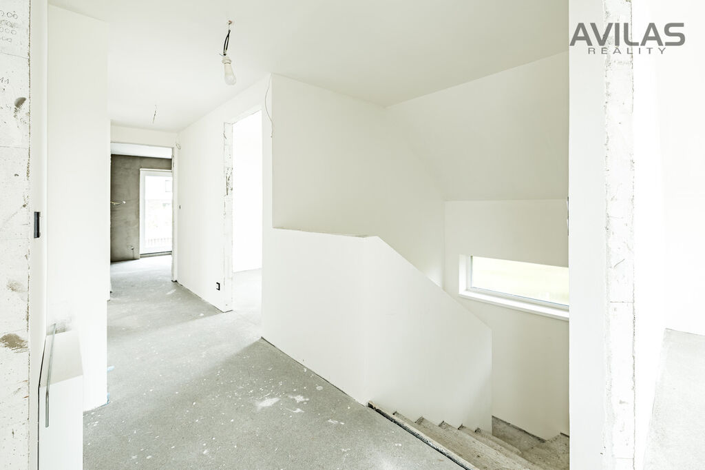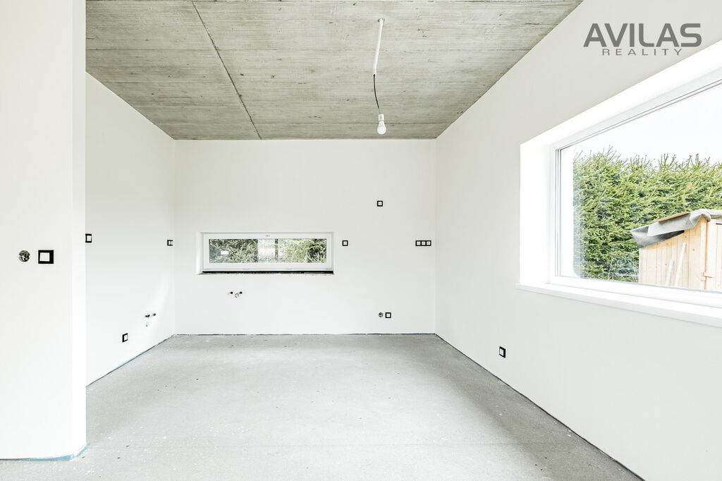 Přízemí: obývací pokoj s kuchyňským koutem 29,24 m2, ložnice 11,30 m2, šatna 5,48 m2, koupelna 5,94 m2, technická místnost 4,86 m2, sklad (pod schody) 4,30 m2, chodba 6,77 m2, zádveří 5,26 m2.