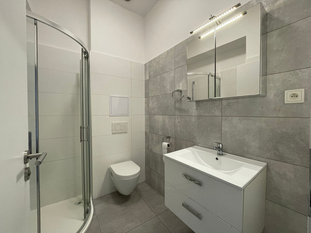 Byt je po rekonstrukci, s novými plastovými okny. Prostorný obytný byt s kuchyňským koutem, který je plně vybaven varnou deskou, troubou, myčkou a lednicí. Koupelna je vybavena sprchovým koutem, umyvadlem a toaletou.