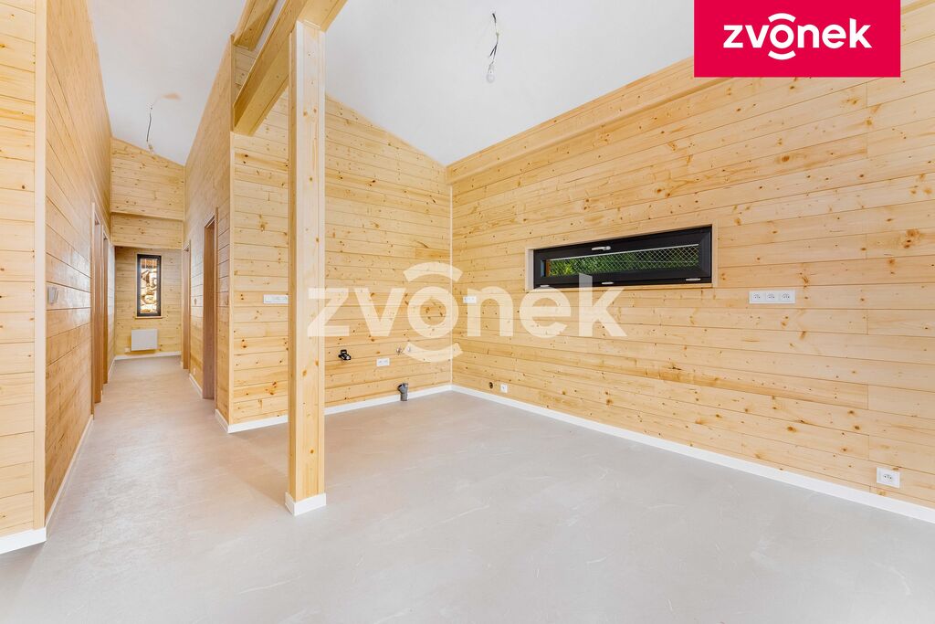 Hledáte klidné bydlení obklopené přírodou, ale přitom s výbornou dostupností do města? Právě pro vás máme v nabídce novostavbu moderní dřevostavby 3+kk v malebné obci Kašava na Zlínsku. Dům se nachází na slunném místě na okraji lesa. Jedná se o ideální kombinaci zdravého bydlení v přírodě a moderních technologií, díky kterým je provoz domu velmi úsporný. Dům je postaven z kvalitních materiálů s důrazem na ekologii, tepelnou izolaci a komfort. Světlé interiéry, praktické dispozice, příjemné klima dřevostavby a krásné výhledy do zeleně, dělají z této nemovitosti skvělé místo pro život. Další přidanou hodnotou je rozsáhlá modřínová dřevěná terasa ze dvou stran domu (42m2), přístupná z každé místnosti (francouzská okna), která vytváří ideální prostor pro odpočinek, rodinné večeře i letní posezení s přáteli. Dům o výměře 76 m2 má betonový základ. Vnější obklady domu jsou z modřínu (18cm polystyren, vnitřní jádro 10 cm vata, včetně parozábran, rošt). Vnitřní obklad je ze smrku. V obývacím pokoji jsou nosné dřevěné sloupy, v nich ocelové nosné konzoly. V celém domě jsou vinylové podlahy (kročejová izolace), v koupelně je keramická podlaha. Okna, francouzská okna, předokenní žaluzie a venkovní parapety jsou vyrobeny z hliníku. Dům má vlastní studnu, je zde možnost přípojky na obecní vodovod. Vytápění je zajištěno elektrickými přímotopy v každé místnosti a krbem v obývacím pokoji. V technické místnosti se nachází elektrický bojler(120l) a darling na vodu. Kanalizace je řešena septikem s přepadem, se štěrkopískovým filtrem. V celém domě jsou chráněné elektrické rozvody v mědi. Stěny jsou protipožární. Plechová střecha je opatřena síťkami, je zajištěno odvětrávání, izolace střechy 20cm+parozábrany. Dům má sádrokartonové stropy. Dřevostavba se nachází na oploceném pozemku, součástí je zahrada o výměře 761m2. K novostavbě vedou schody z římského bloku, kolem domu makadam a kačírek. Svahy jsou zpevněny kameny z pískovce. Součástí domu je sklep (6m2) s izolací. Parkování pro tři auta je zajištěno přímo u domu, možnost vybudování přístřešku pro auto na zahradě. Příjezdová cesta až k domu. Dojezdová vzdálenost do Zlína 12km. Dům se prodává bez vybavení, foto je pouze ilustrační. Přijďte se podívat na místo k bydlení, které voní dřevem a lesem. Těším se s vámi na prohlídku.