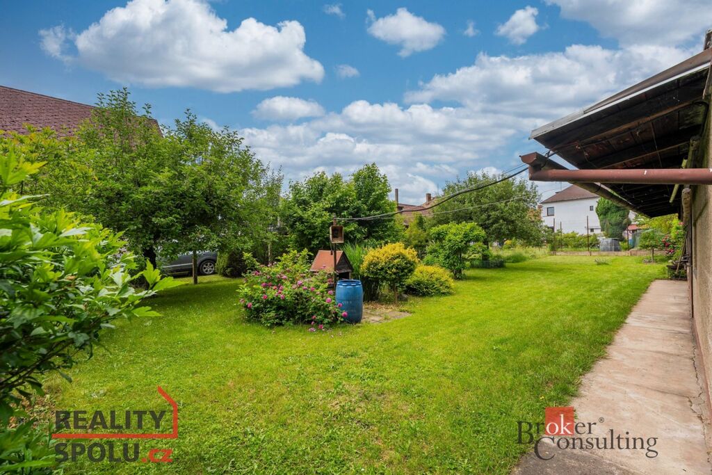 Zahrada uspokojí i domácí pěstitele zeleniny, či ovoce ze vzrostlých stromů, nebo menší chov zvířat, za garáží je k dispozici kurník na slepice