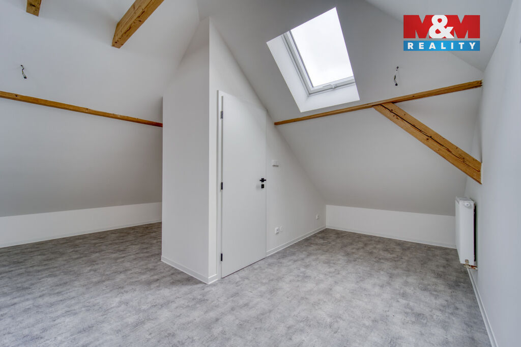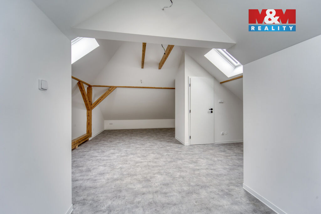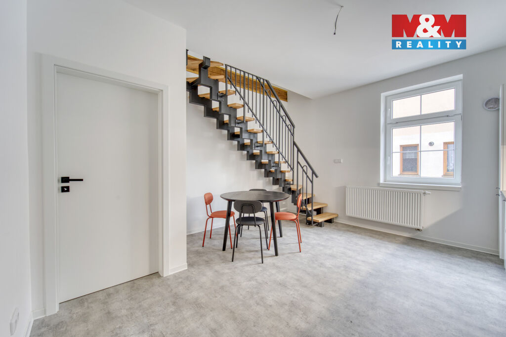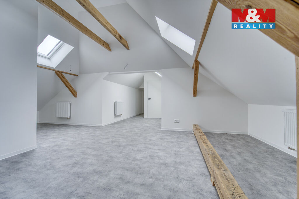 Byt nabízí užitnou plochu 87,57 m² a součástí prodeje je vlastní parkovací místo a část soukromé zahrady situované za domem – ideální místo pro odpočinek nebo posezení s přáteli. K výhradnímu využití je k dispozici terasa na patře.