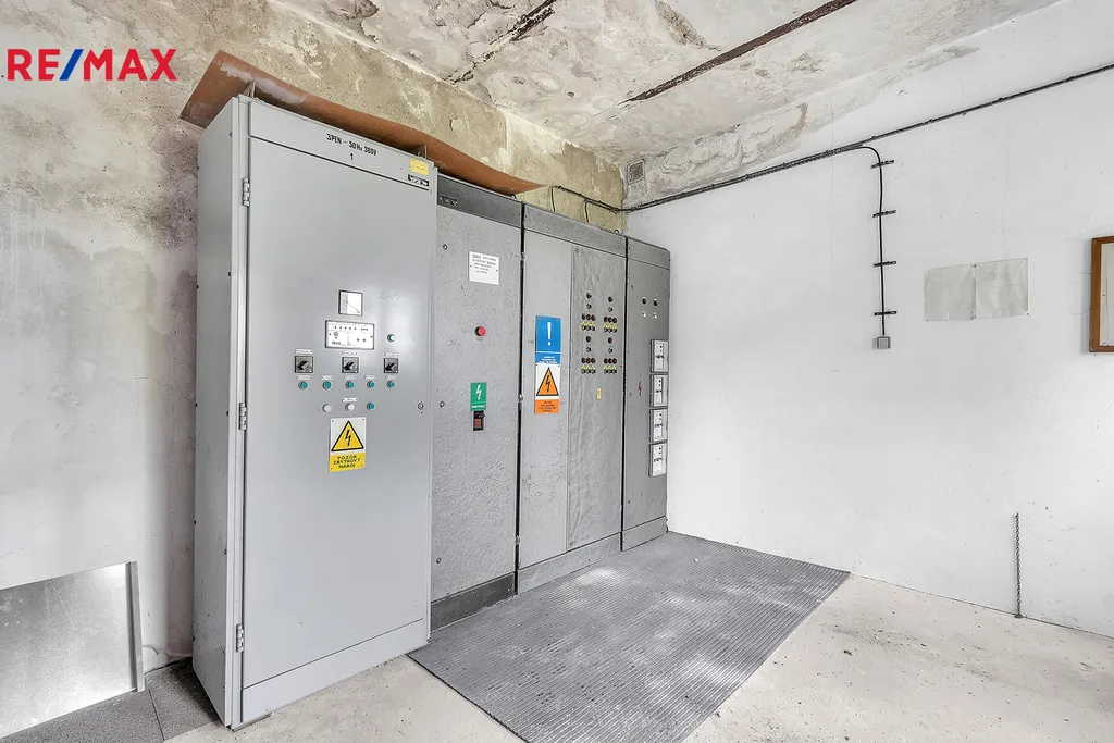 Na jedné straně objektu je přístavek s elektrickou rozvodnou.