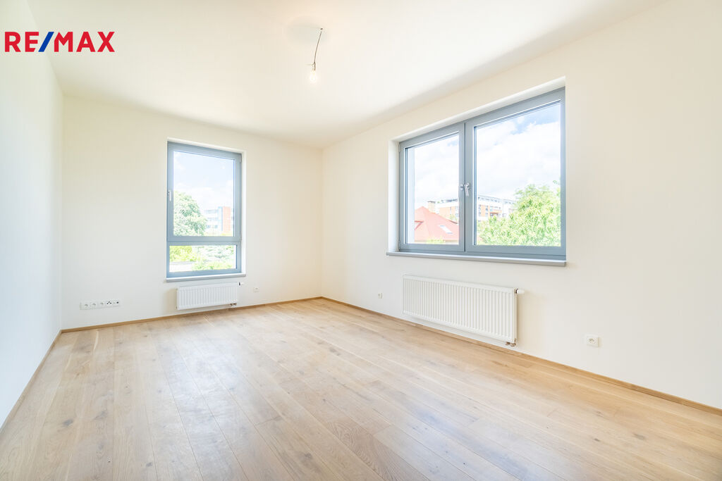 Dominantou bytu jsou velká okna, která pouštějí do všech místností dostatek přirozeného světla po celý den. Díky orientaci a umístění v nejvyšším podlaží je byt mimořádně slunný a působí velmi vzdušně. K dispozici je prostorný obývací pokoj s přípravou na kuchyňskou linku, dvě ložnice, koupelna s vanou a samostatná toaleta. Součástí jednotky je také velkorysý balkon, který nabízí klidné posezení s výhledem do vnitrobloku.