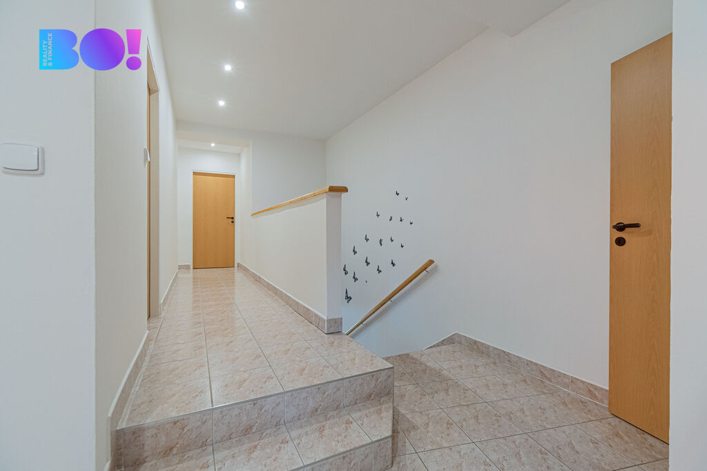 V přízemí najdete prostorný obývací pokoj s přímým vstupem na terasu, kuchyň s jídelnou, pokoj pro hosty či pracovnu a koupelnu se sprchovým koutem. V patře jsou čtyři neprůchozí ložnice a druhá, větší koupelna s vanou. Dům je částečně podsklepen a nabízí i půdní prostor, který lze využít k dalšímu rozšíření nebo jako úložné zázemí.