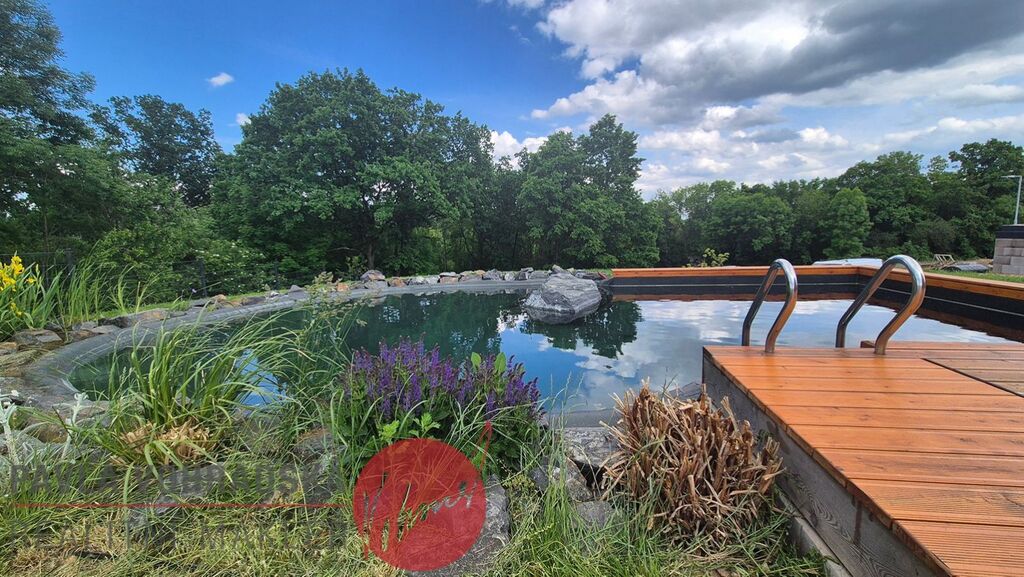 Koupací jezírko se solární sprchou a technickým zázemím