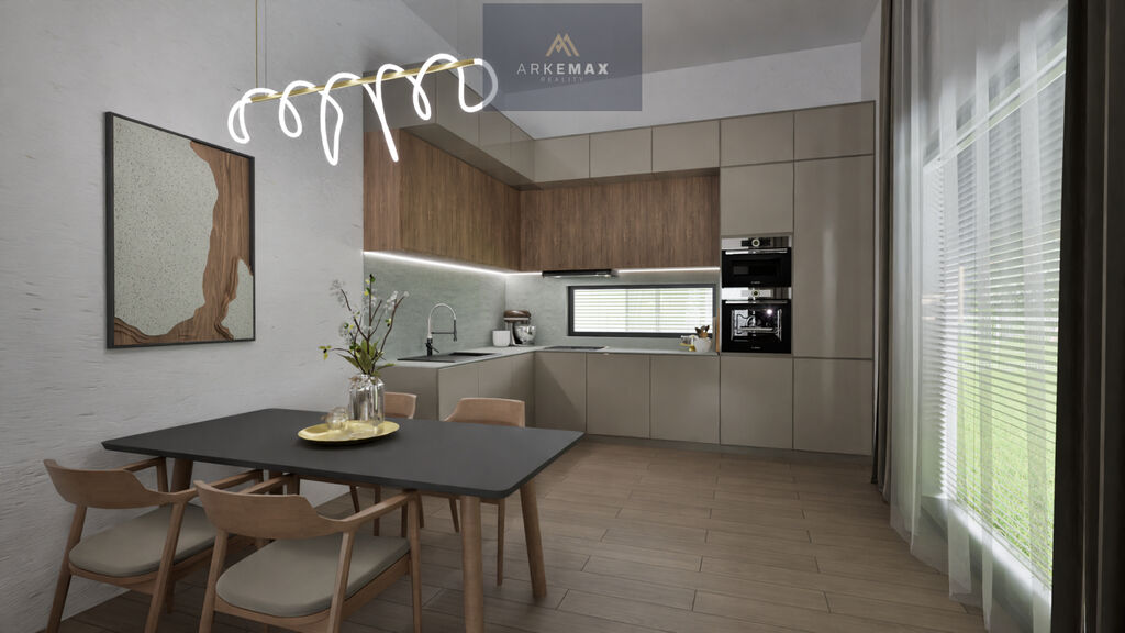 Po celé ploše domu je podlahové vytápění napojeno na úsporné teplené čerpadlo, primární zdroj tepla a zásobník (180-200l) na ohřev teplé vody. Tento zdroj bude umístěn v garáži v 1NP. Energetickou náročnost budovy ve skupině A zajišťuje kvalitní izolace tloušťky 200 mm a plastová okna s trojsklem, s venkovními el. ovládanými žaluziemi. Vjezd do garáže přes sekční el. ovládaná vrata. Před domem