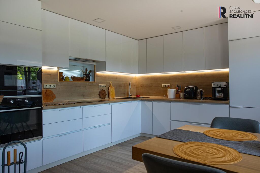 + Přízemí 129 m2 - obytná část (plovoucí podlahy, koupelna se sprchovým koutem, dlažba, nová okna a plně vybavená kuchyňská linka)