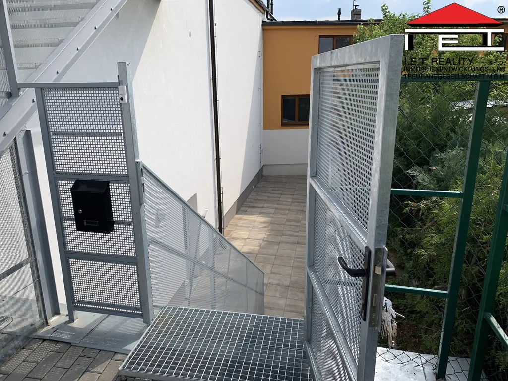 Před vstupem do bytu se nachází vlastní velká terasa, která Vám poskytne dostatek soukromí k odpočinku i realizaci vlastních nápadů. K jednotce se dostanete po kovovém schodišti.