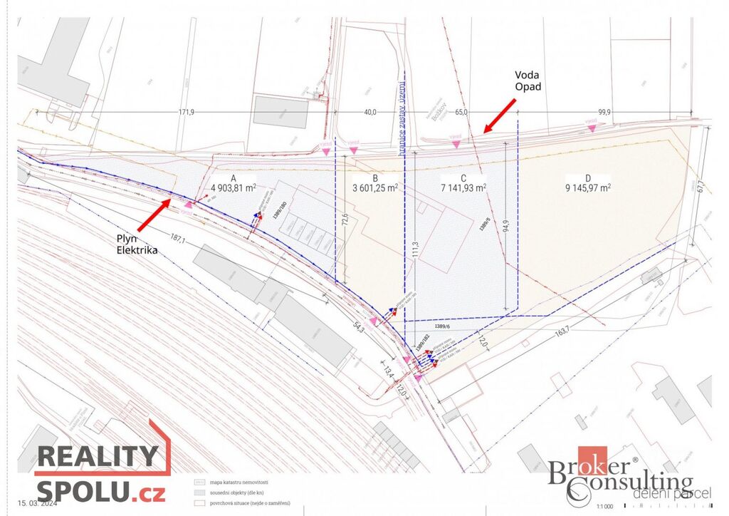 Na hranici pozemku jsou připravené veškeré inženýrské sítě – voda, plyn, elektřina i odpady – což umožňuje rychlé a efektivní zahájení výstavby.