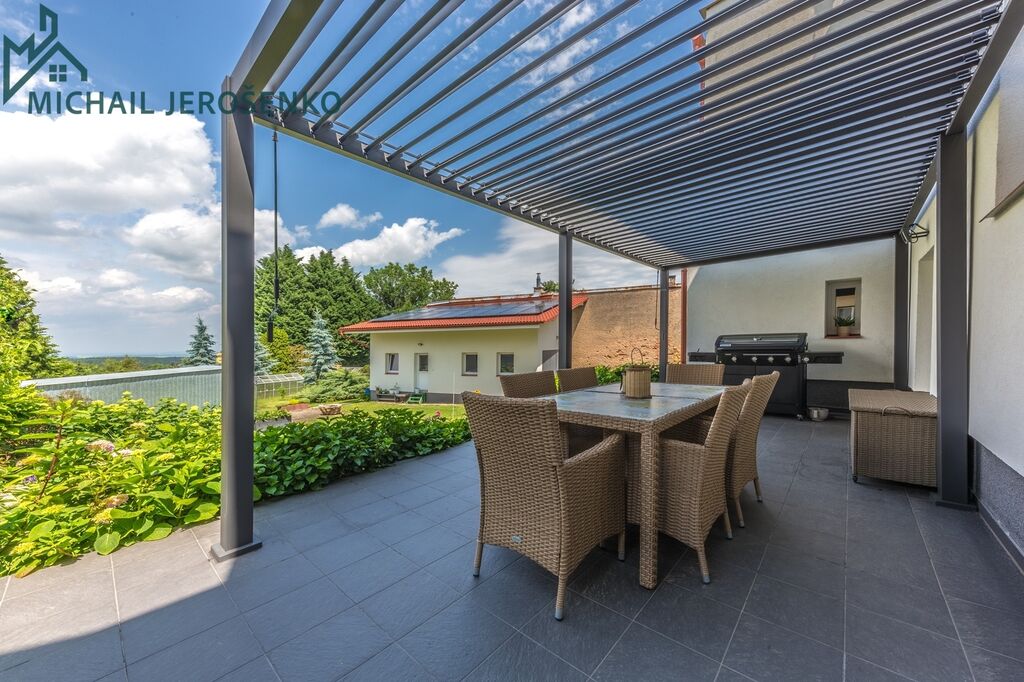 Celková plocha domu činí 428 m², což umožňuje pohodlné bydlení více rodinám nebo kombinaci s podnikáním.