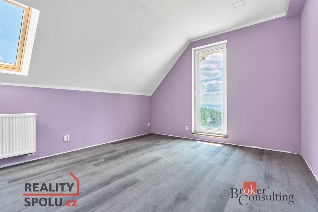 Tento prostorný dům s dispozicí 6+1 a podlahovou plochou 202 m² stojí na velkorysém, svažitém pozemku o rozloze 1 488 m². Z jedné strany jej chrání tichý les, který zve k procházkám a relaxaci, z druhé strany se otevírá dechberoucí výhled do údolí a až na samotné Karlovy Vary. Každý den zde můžete pozorovat proměny přírody a užívat si klidu, který nabízí jen opravdový domov na venkově.