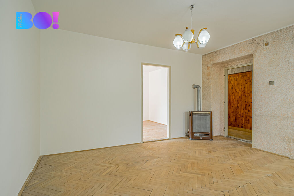 Dům je zateplen a má plastová okna. Byt je v původním stavu, na podlahách v pokojích jsou zachovalé parkety, v chodbě, koupelně a WC pak dlažba. K vytápění slouží v jednotlivých pokojích plynová kamna, ohřev vody zajišťuje plynová karma. Výhodou jsou 2 prostorné sklepy.