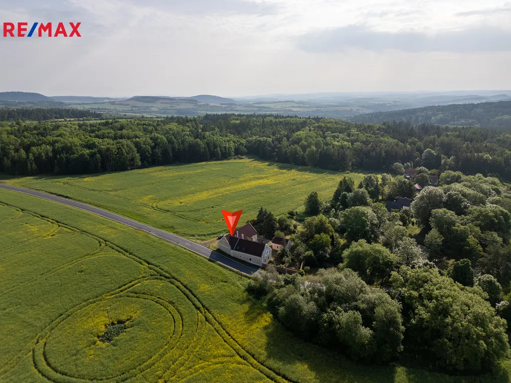 Celý pozemek má 1 135 m², je zde velká zahrada s ovocnými stromy, vrtaná studna a vlastní LPG zásobník. I když se nemovitost nachází kousek od dálnice, je schovaná za lesem na okraji obce, v nádherné přírodě plné klidu a zpěvu ptáků. Tato usedlost je srdeční záležitost – ideální pro rodinné bydlení, ale i jako investiční příležitost pro podnikání na venkově.