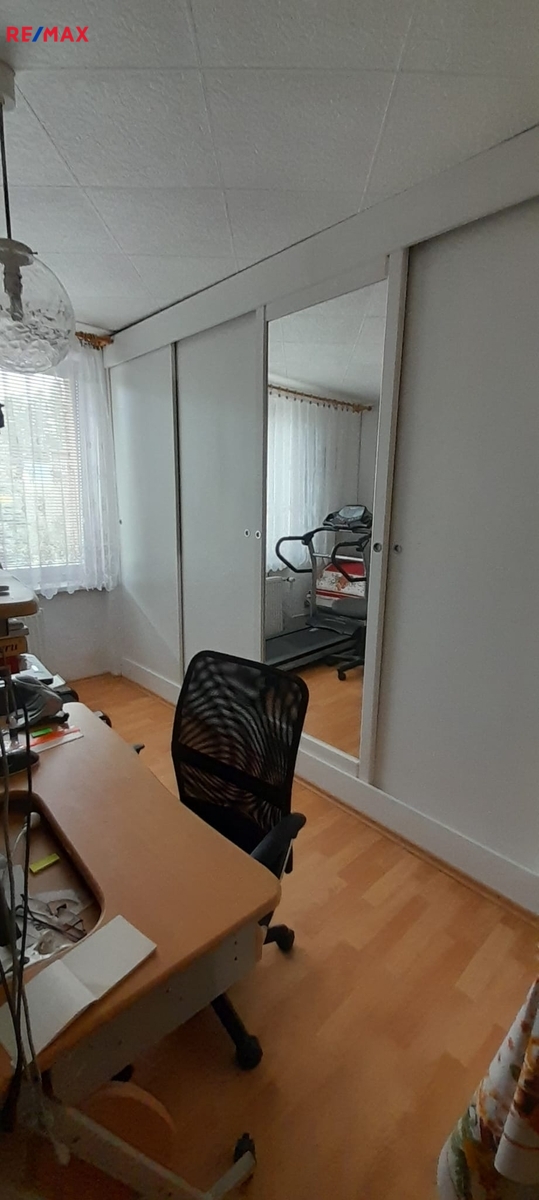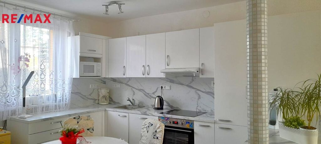 Byt sestává z obývacího pokoje, ložnice, dvou pokojů, kuchyně vybavené myčkou, el sporákem s troubou a lednicí, což je rovněž součást prodeje.