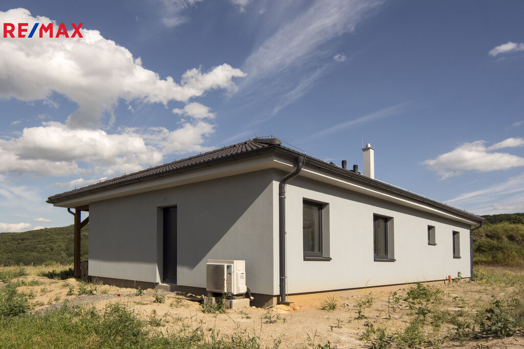 Hledáte svůj nový domov? Máme pro Vás nový dům! Nabízíme ekonomicky úspornou novostavbu jednopodlažního bungalovu v rámci developerského projektu (6 domů) o velikosti 121 m2, navrženou tak, aby splňovala současné nároky na moderní domov. Tak je koncipován i interiér 4+kk. Za vchodem do budovy se nachází technická místnost, dále jsou umístěny 3 ložnice, 2 z nich mají vlastní šatnu, z chodby je dále vstup do koupelny s WC a do dalšího, samostatného WC. V čele chodby vstoupíme do prostorného, světlého obývacího pokoje s přípravou na kuchyňský kout. Zde jsou francouzská okna do zahrady.