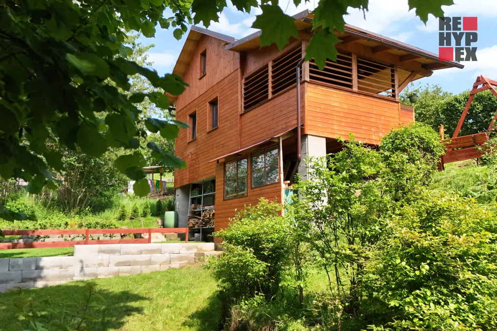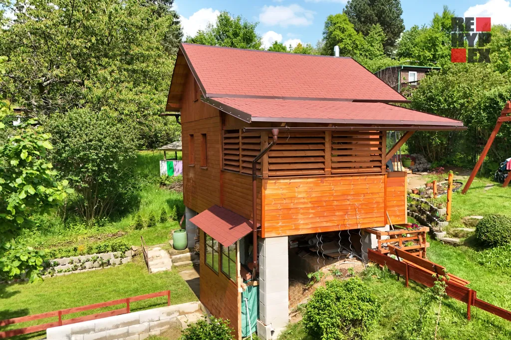 Zateplená a podezděná dřevostavba o dispozici 2+kk je situována na vlastním oploceném pozemku a poskytuje vysokou míru soukromí a klidného zázemí pro odpočinek.