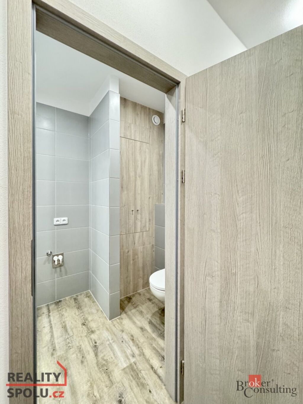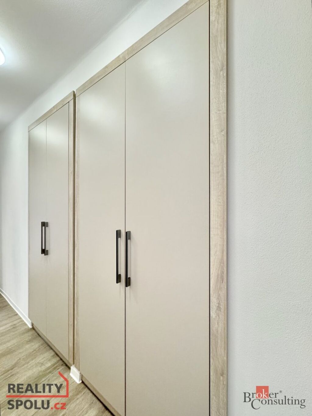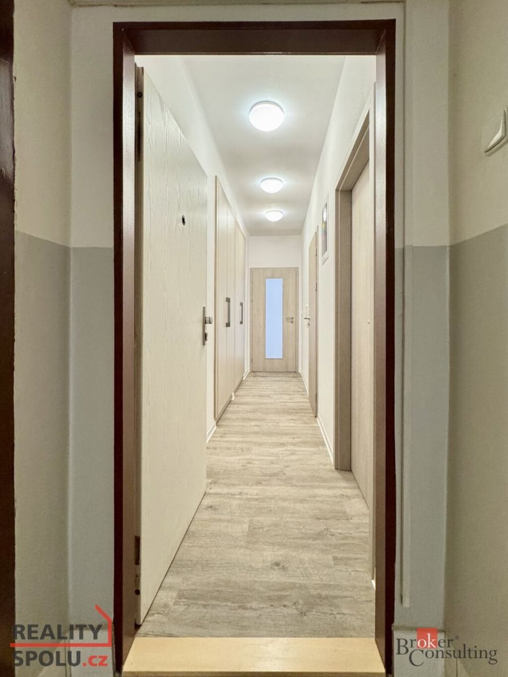 Po vstupu do bytu se ocitnete ve světlé chodbě, kde jsou instalovány praktické vestavné skříně. Z chodby se vchází do samostatného pokoje, do prostorné koupelny a do dominanty celého bytu - pokoje s kuchyňským koutem. Zde je přístup do dalšího pokoje. Koupelna je společná s WC a je vybavená vanou a dostatečným místem pro pračku. Nová kuchyňská linka je vybavena spotřebiči (indukční varnou deskou, digestoří, elektrickou troubou a myčkou nádobí). Je připraven prostor pro lednici a mikrovlnnou troubu. Celý byt je bezbariérový a nabízí úsporné bydlení díky energetickému štítku C.