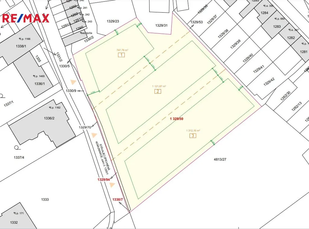 Poslední volný pozemek ze souboru stavebních pozemků v centru Hustopečí na ulici kpt. Jaroše.
