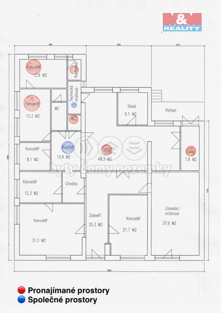 Nabízíme k pronájmu obchodní prostory nacházející se v blízkosti centra Chrudimi. Prostory jsou situovány v zadní části přízemní cihlové budovy a skládají se ze 2 kanceláří, 2 skladů a 2 místností se sociálním zařízením, což poskytuje ideální zázemí pro kanceláře, nebo jiné komerční využití. Pronajímané kanceláře nemají výlohy. Velkou výhodou je také rampa ze zadní části budovy s přístupem přímo do pronajímaného skladu. Díky dobrému stavu objektu není potřeba žádných větších úprav a je připraven k okamžitému využití. Výhodné umístění zajišťuje snadnou dostupnost pro klienty i zaměstnance. Ve fotogalerii najdete také půdorys, ve kterém jsou červeně označeny místnosti k pronájmu a modře jsou vyznačeny prostory ke společnému užívaní s dalšími nájemníky. Neváhejte nás kontaktovat pro více informací a sjednání prohlídky tohoto atraktivního prostoru.